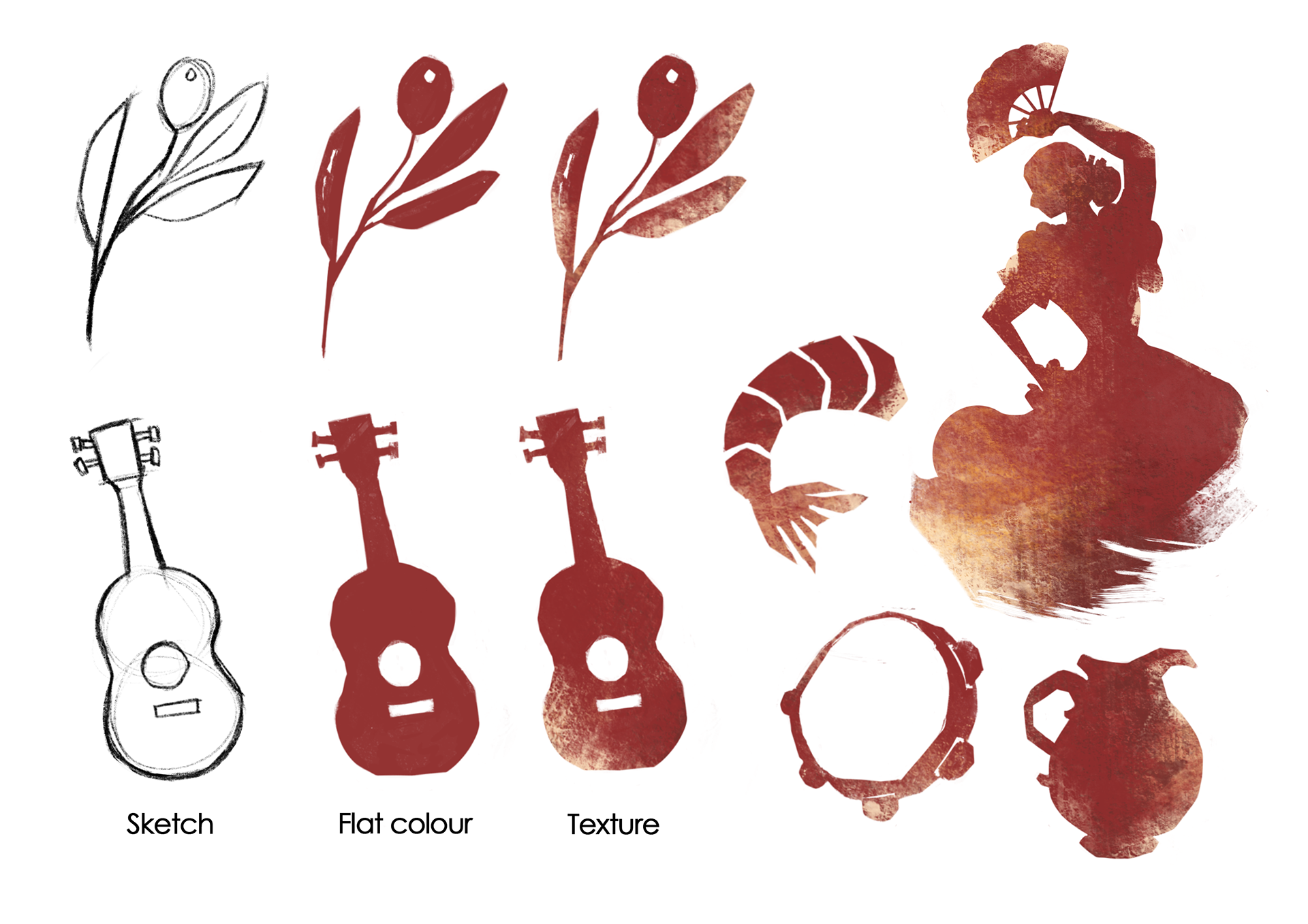 I began with researching colours and imagery before sketching out a couple of ideas for layouts and images that would work for the key graphics. I wanted to have a hand-made feel to bring to live the vibrancy and human element of the arts celebrated in the festival so I made the edges rough and added textures.